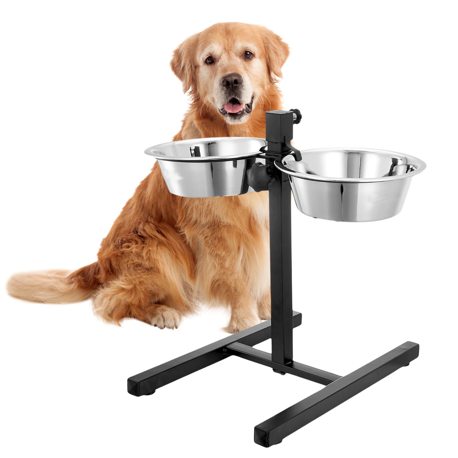 Adjustable Pets Bowl Elevated Double Diner Dog Bowls (1600 ml x 2) | H-Base Stand with Stainless Steel Removable Bowls | Dogs Feeding Station (Large)